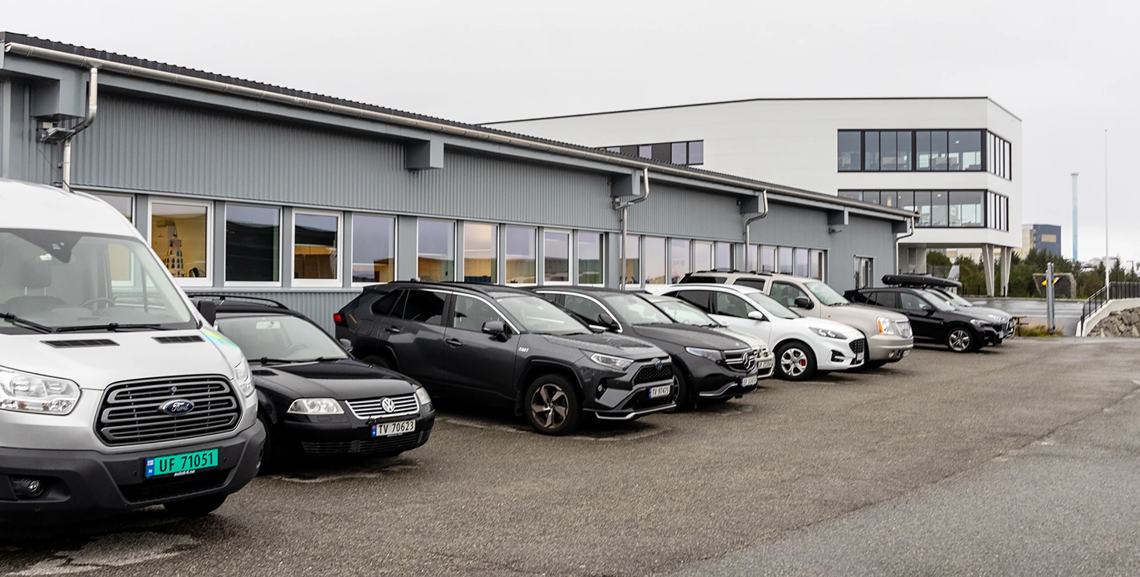 Der er rikelig med parkeringsplasser på nord- og vestsiden av kontorbygget.