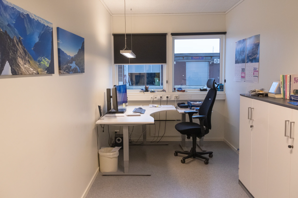 Arealet strekkjer seg over eitt plan med kontor, møterom, kjøkken, toalett til damer/herrer og ventilasjonsrom. Oppgradert i 2014 med nytt ventilasjonsanlegg, nye overflater (vegg/gulv), nye vindu og nye stålplater på yttervegg og tak. Enkel adgang til bygget, to innganger…